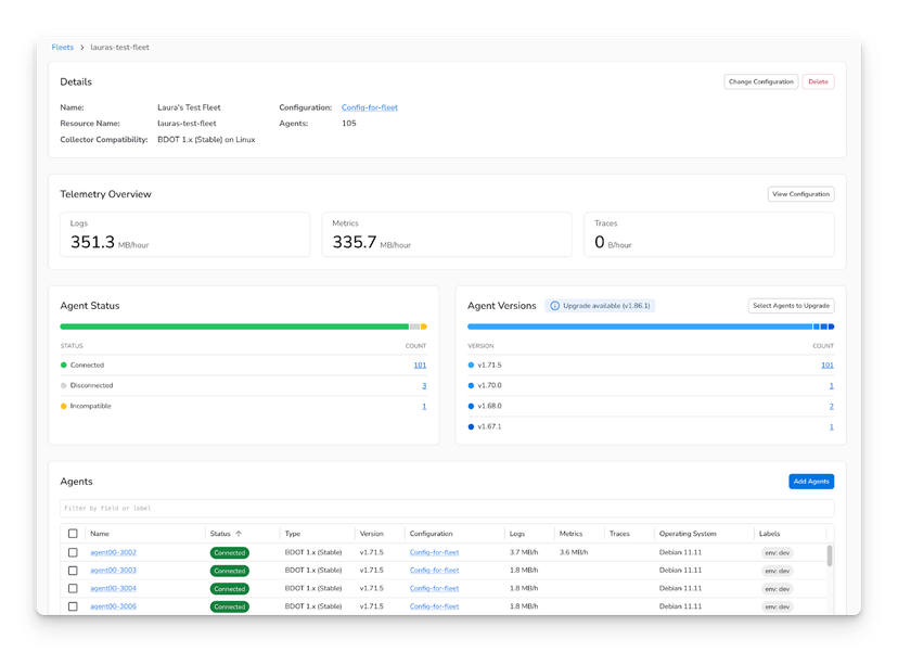 Use it when: you want fleet visibility without remote config management.